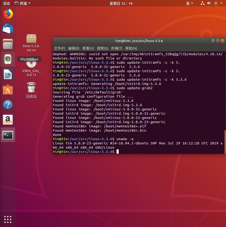 $sudo make install整个过程大概只用了30分钟,编译完内核后一定要重启!!!!!